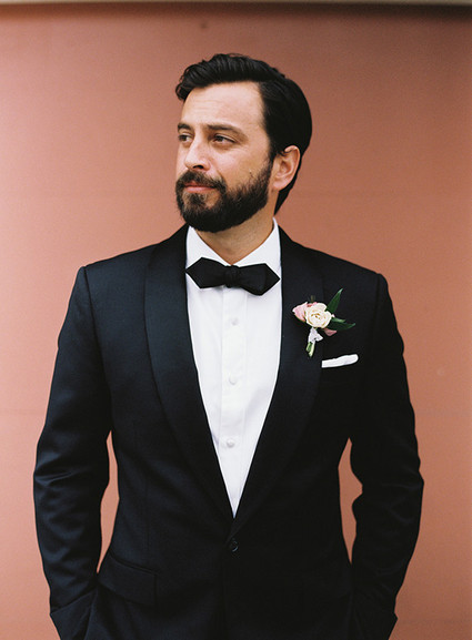 • Groom in tux with bow tie