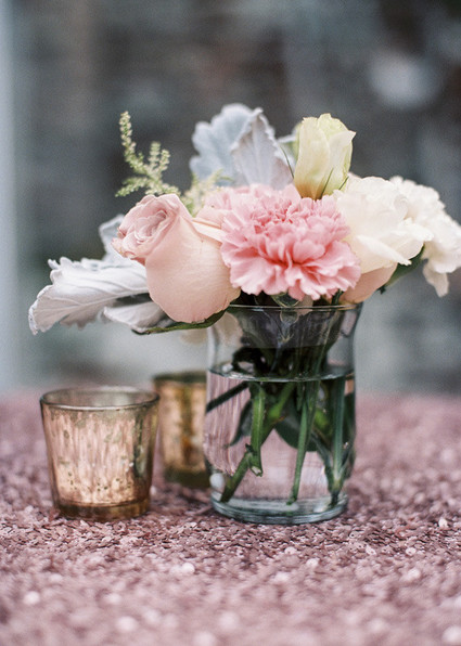 • Silver vase with pink roses